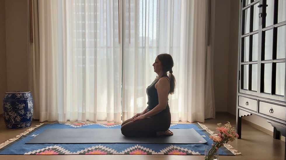 Sit comfortably in a cross-legged position or on your heels. The ground should feel stable beneath you.